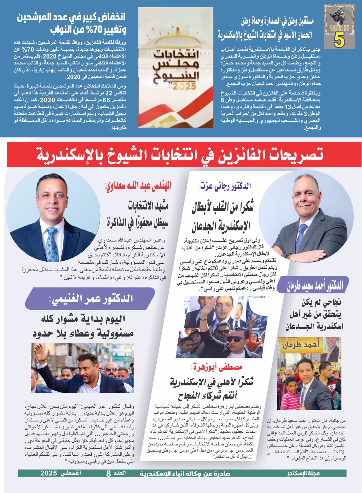 وقال الدكتور عمر الغنيمي: “اليوم مش بس إعلان نجاح، اليوم هو إعلان بداية جديدة… بداية مشوار كله مسؤولية وعطاء من غير حدود.. شكراً من قلبي لأهلي وسندي وأصدقائي اللي كانوا دايمًا في ظهري، شكراً لأخواتي ورجالتي الجدعان… اللي اشتغلوا ليل ونهار بقلبهم قبل مجهودهم، كل واحد فيكم كان بطل حقيقي في المعركة دي.. وأكبر شكر لأهل إسكندرية الكرام، على الإقبال المشرف، وعلى المشاركة اللي رفعت راسنا كلنا، وعلى ثقتكم الغالية، التي ستظل دين في رقبتي ومسؤولية.”