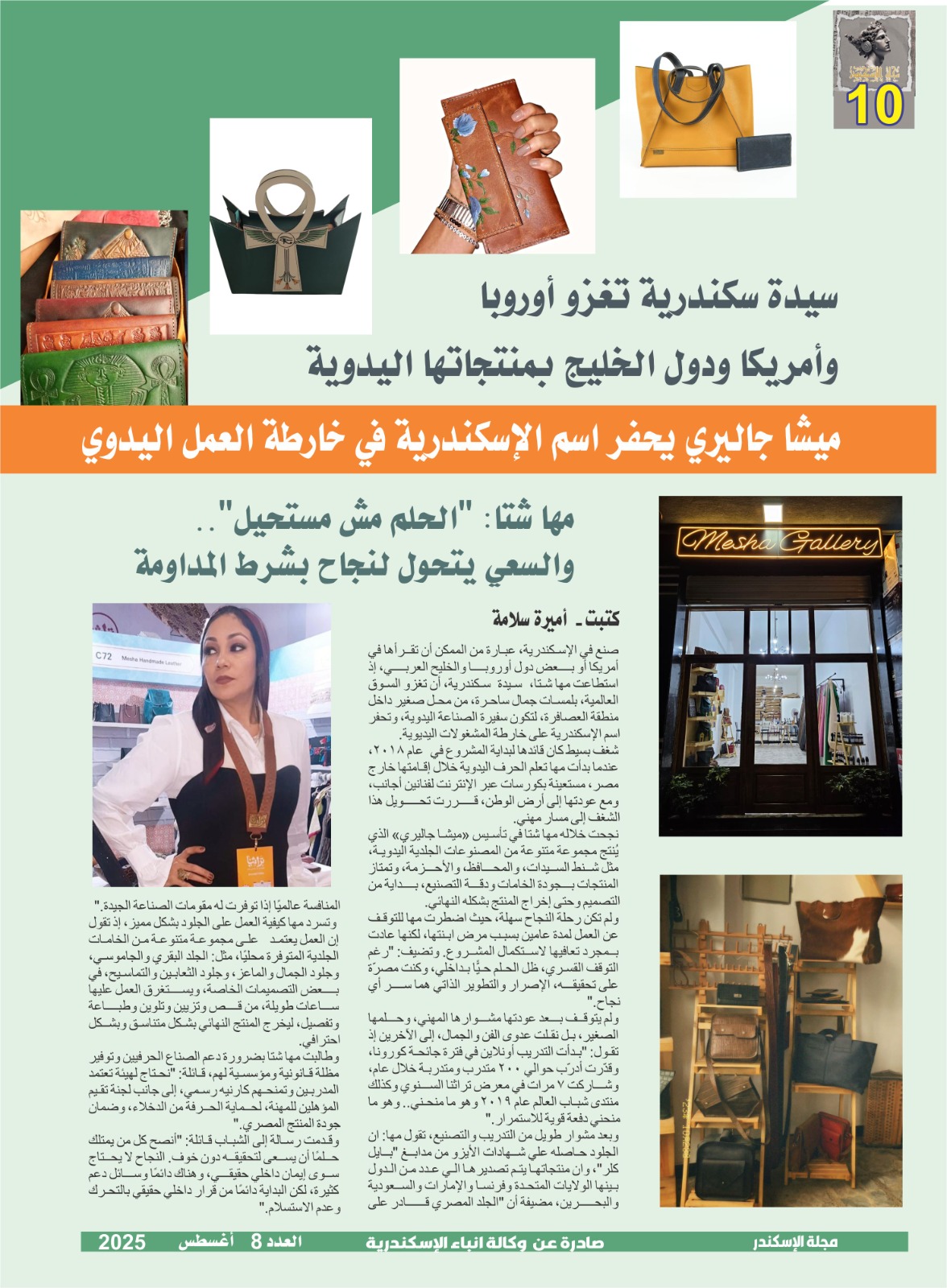ميشا جاليري.. الحلم بدأ في 2018رحلة نجاح لم تكن سهلةمها تغزو أوروبا وأمريكا ودول الخليجرسالة إلى الحرفيين والشباب: اسعى لتحقيق حلمك دون خوف