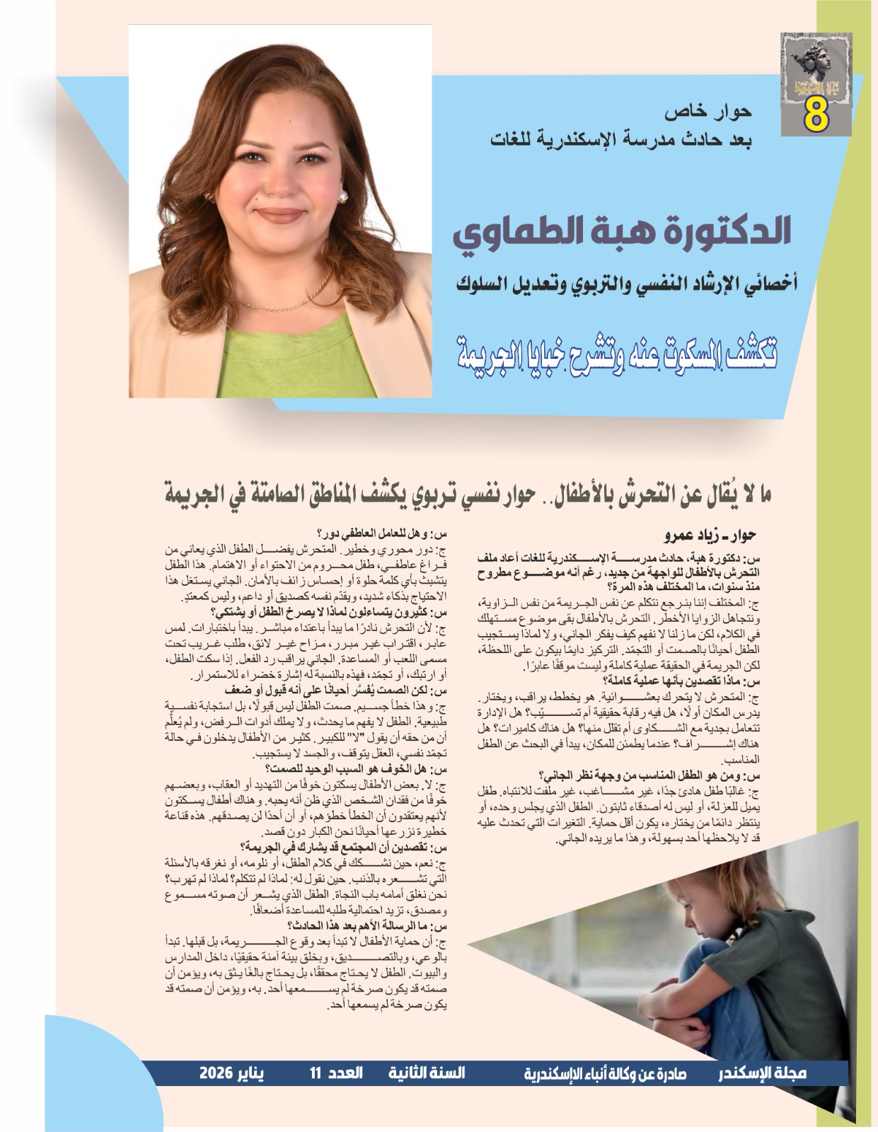 الدكتورة هبة الطماوي أخصائي الإرشاد النفسي والتربوي وتعديل السلوك تكشف المسكوت عنه وتشرح خبايا الجريمة..