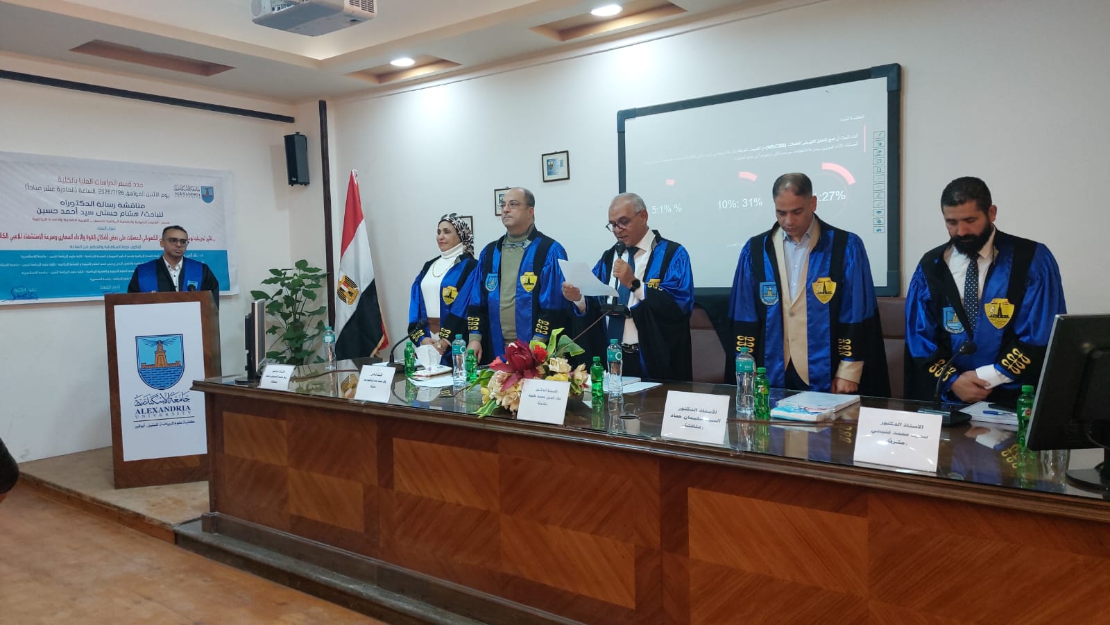 وتشكلت لجنة الحكم والمناقشة على الرسالة العلمية من: الأستاذ الدكتور علاء الدين محمد محمد عليوة، أستاذ الصحة الرياضية بكلية علوم الرياضة جامعة الإسكندرية، والأستاذ الدكتور وائل محمد محمد إبراهيم عمر، أستاذ الإصابات الرياضية والتأهيل ورئيس قسم العلوم الحيوية والصحية الرياضية بجامعة الإسكندرية، والأستاذ الدكتور سعيد محمد غنيمي، أستاذ تدريب الجمباز بكلية علوم الرياضة للبنين بجامعة الإسكندرية، الدكتور السيد سليمان حماد، أستاذ الصحة الرياضية بجامعة الإسكندرية، الدكتورة ريم الدسوقي، أستاذ التدريب الرياضي بكلية علوم الرياضة جامعة المنصورة.