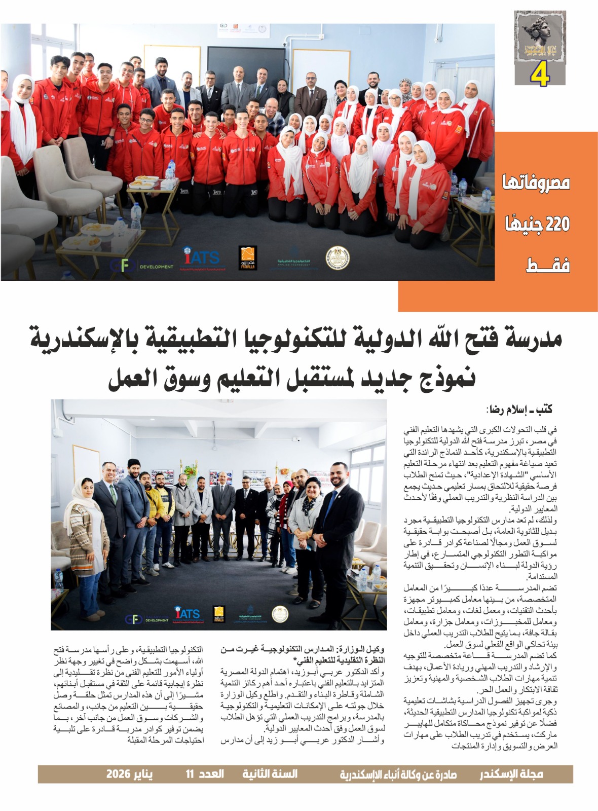 في قلب التحولات الكبرى التي يشهدها التعليم الفني في مصر، تبرز مدرسة فتح الله الدولية للتكنولوجيا التطبيقية بالإسكندرية، كأحد النماذج الرائدة التي تعيد صياغة مفهوم التعليم بعد انتهاء مرحلة التعليم الأساسي “الشهادة الإعدادية”، حيث تمنح الطلاب فرصة حقيقية للالتحاق بمسار تعليمي حديث يجمع بين الدراسة النظرية والتدريب العملي وفقًا لأحدث المعايير الدولية.